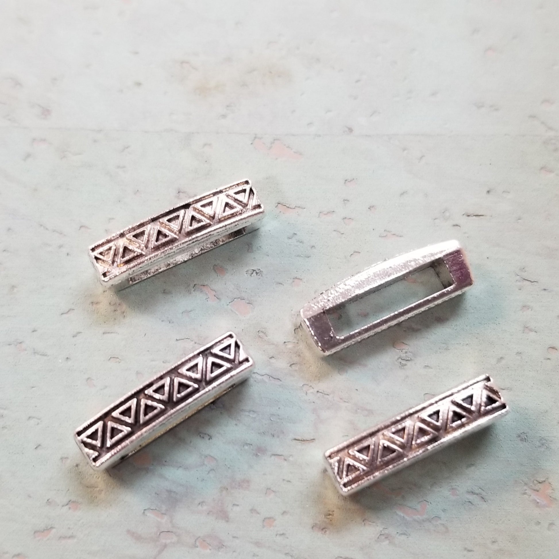 Flat slider that fits the 10 mm flat cording. Triangle pattern on top.