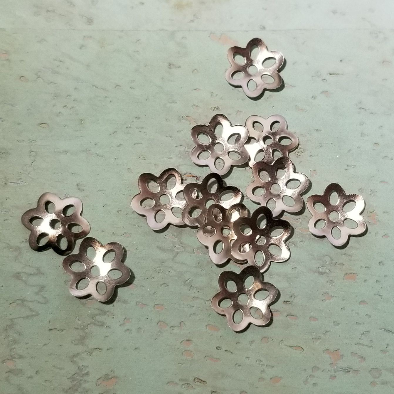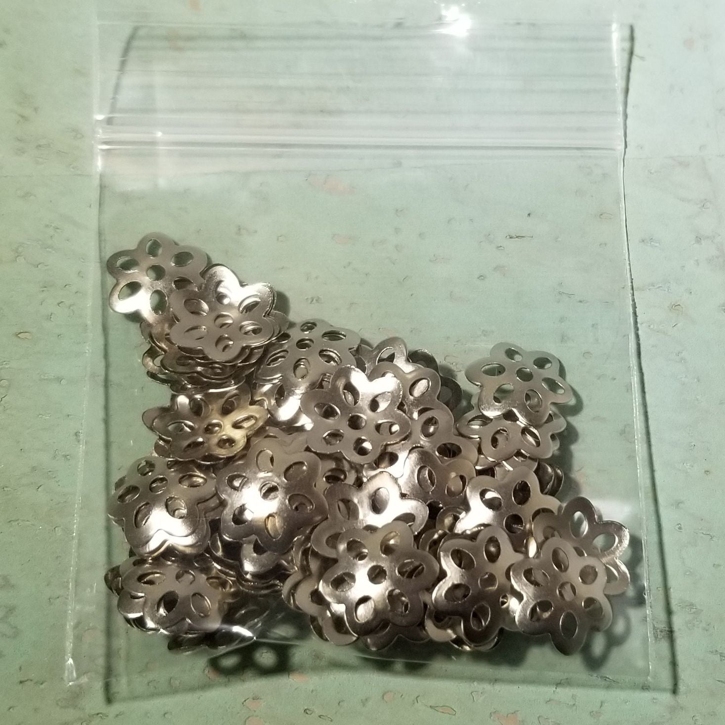 Cute flower like bead caps for creating zipper pulls, wristlet or other bead projects. Bag contains approximately 100 caps. I use a scale to measure in order to save time.
