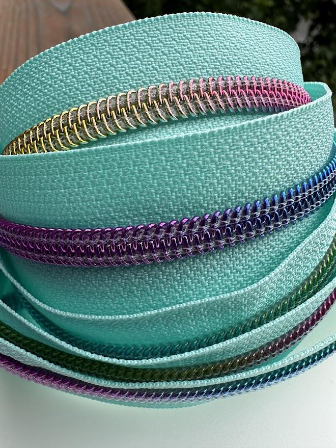 Make a statement and showcase your intricate designs with our #5 Minty Rainbow Nylon Zipper Tape! The minty green tape and colorful rainbow coils add a beautiful, eye-catching touch to any project, while the matching coils truly let the design shine. Get your project finished with ease - our tape fits #5 nylon zipper pulls and is available in 2 or 5 yard cuts. Create something unforgettable today!