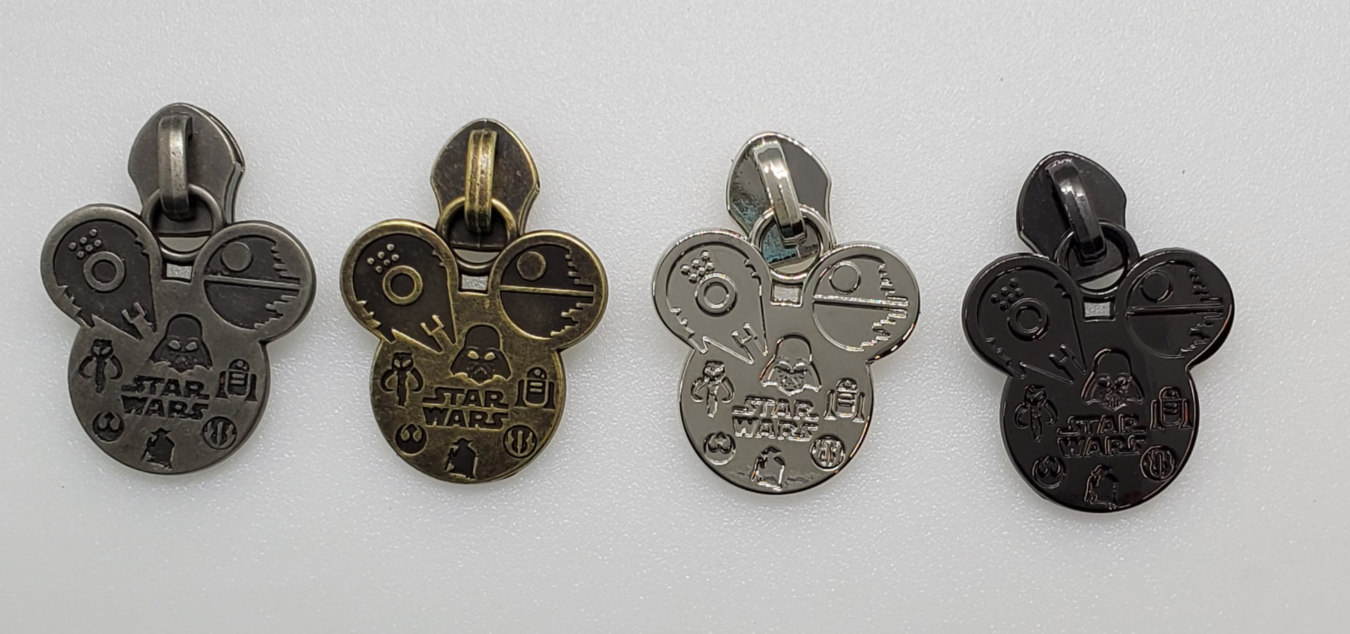 What a great addition to the zipper pull selection! Mouse Wars is an inspired pull for #5 nylon zipper tape. Rainbow colors will vary based on batch.