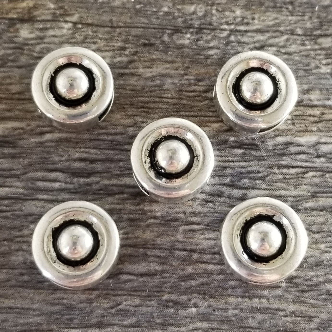 10 mm Round shape silver slider fits the 10 mm flat straps. Sold in sets of 5.