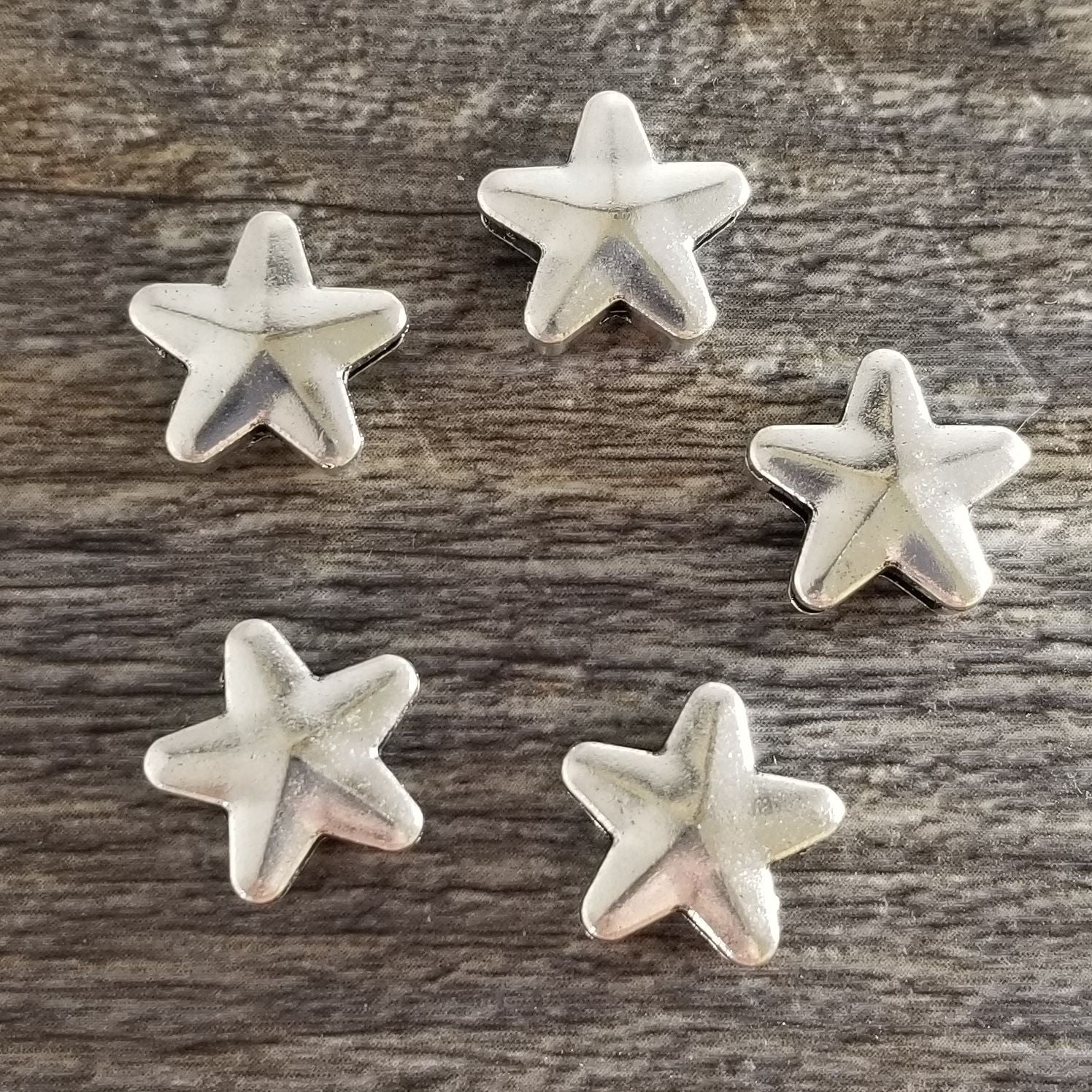 10 mm Star shape silver slider fits the 10 mm flat straps. Sold in sets of 5.