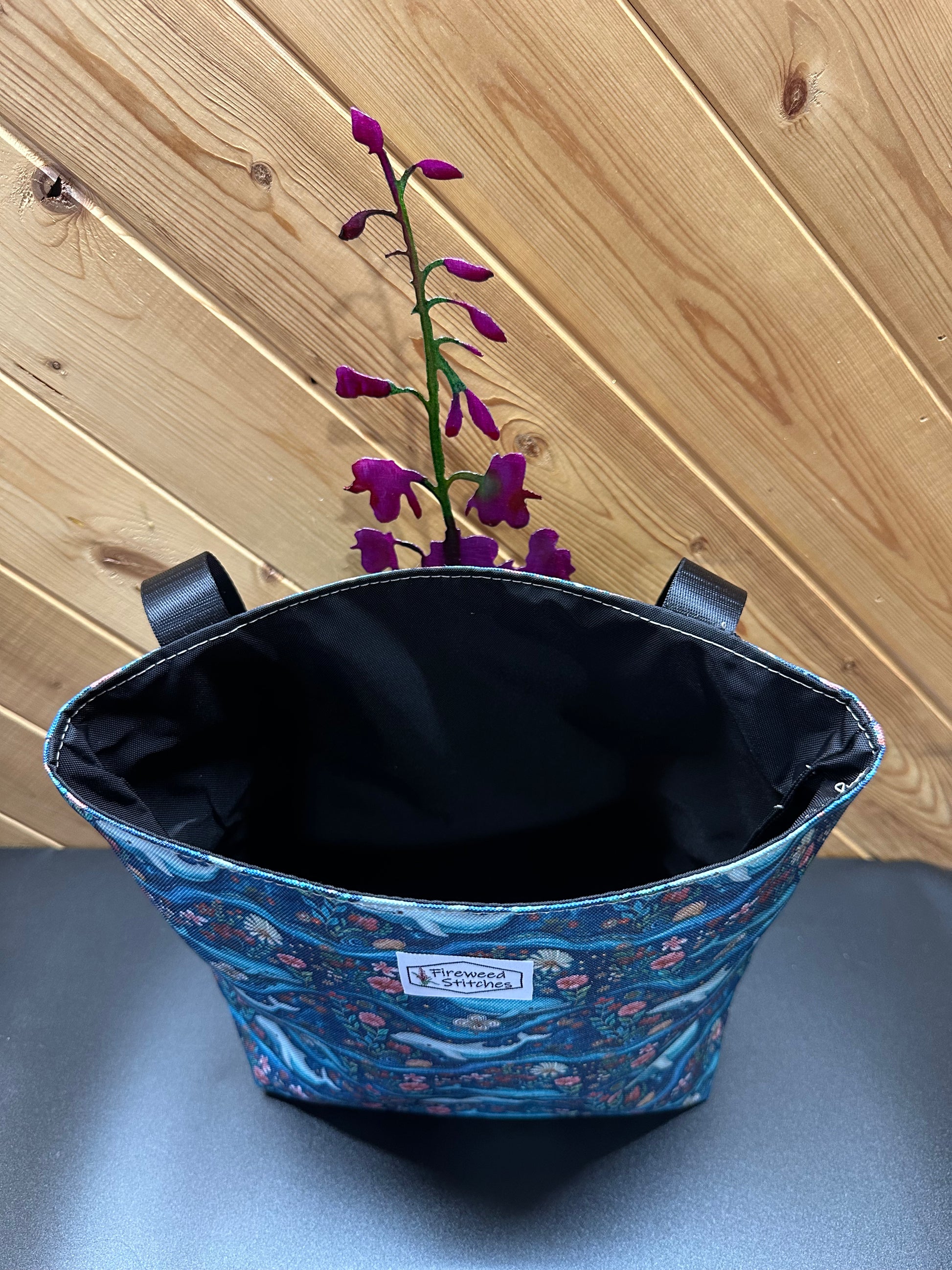 These bags feature beautiful fabrics or waterproof canvas on the outside and water resistant canvas on the inside.