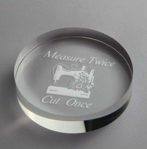 These beautiful weights measure about 3" in diameter and are a great weight for holding the patten piece in place while cutting.