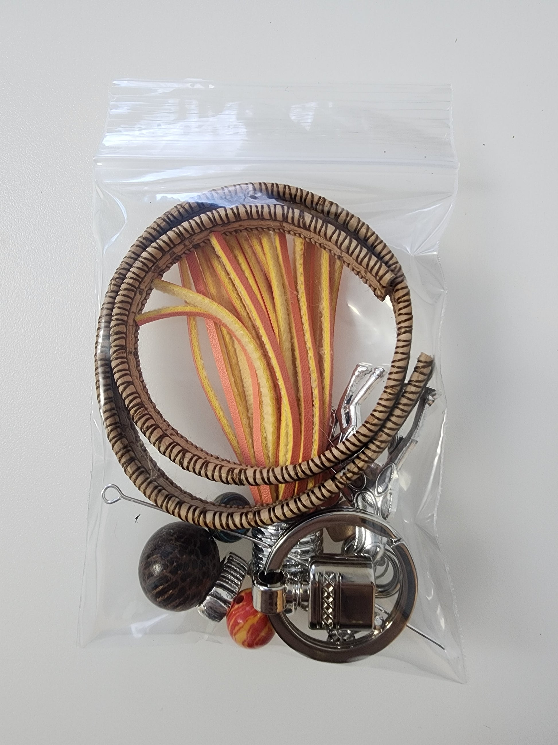 This is a kit and will include everything you need to make the pictured wristlet. If the exact charm/slider/beads are out of stock I will replace them with a similar item.